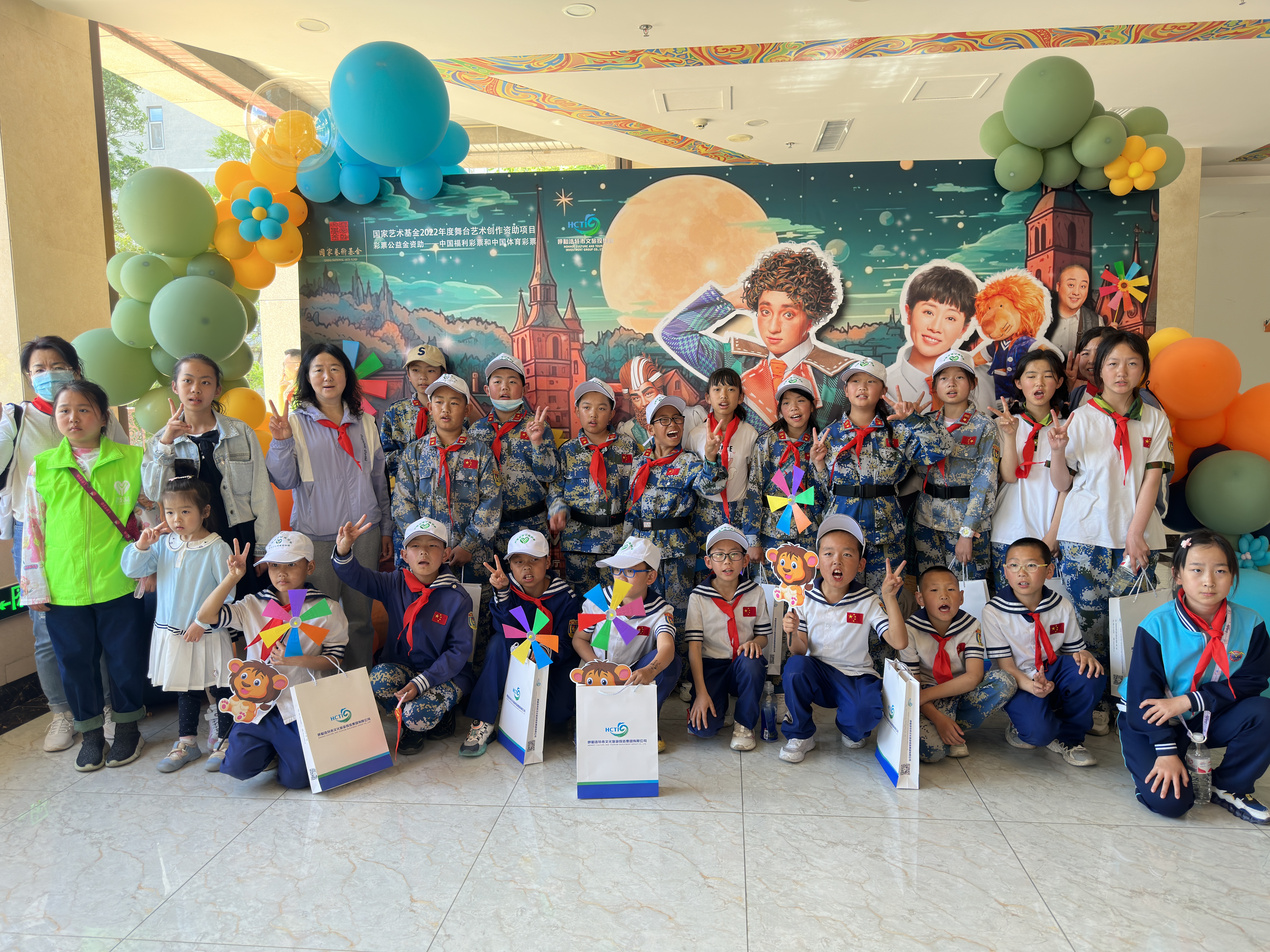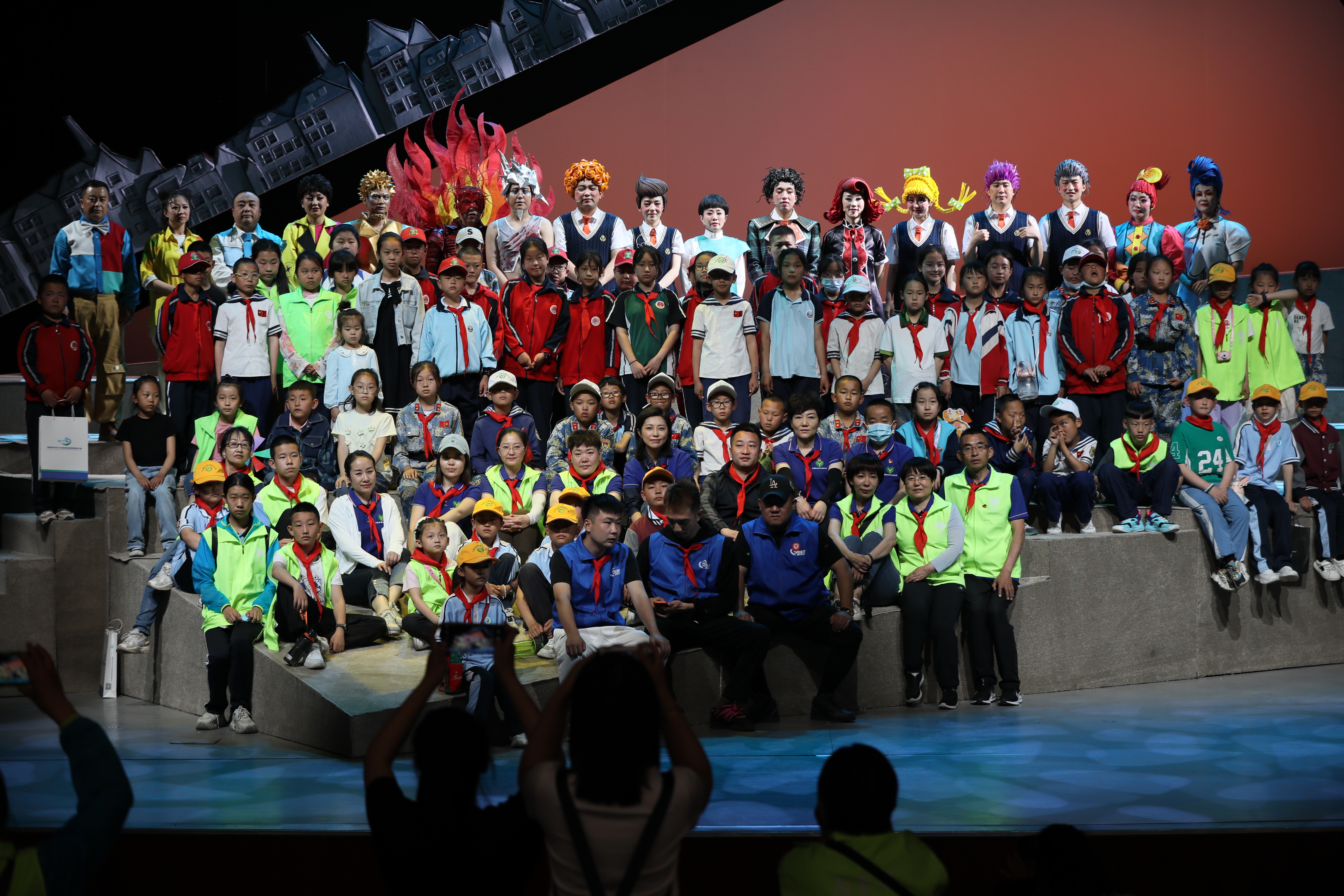 ? ? 為加強(qiáng)未成年人政治啟蒙和價(jià)值觀塑造,延展“寶貝出村 ?情暖童心”項(xiàng)目,讓小朋友們?cè)诳鞓返牧粌和?jié)中再次感受別樣的童年體驗(yàn)。演出期間,特邀部分全市“優(yōu)秀少先隊(duì)員”“紅領(lǐng)巾獎(jiǎng)?wù)隆鄙傧汝?duì)員代表和大山里的60余名寶貝走進(jìn)劇場(chǎng)觀看演出,并為他們發(fā)放了劇目伴手禮。小觀眾爭(zhēng)先恐后地表示對(duì)這個(gè)劇目的喜愛程度,尤其是當(dāng)戲中戲動(dòng)漫人物普羅米修斯出現(xiàn)的時(shí)候,被夢(mèng)幻的舞臺(tái)驚艷到了?!斑@是我第一次走進(jìn)劇場(chǎng)觀看演出,感覺很新奇,劇場(chǎng)非常大,座椅也很舒服,看到舞臺(tái)上真實(shí)的云朵好漂亮,想去觸摸下。特別喜歡調(diào)皮的小卡爾,也學(xué)到了抽象和具象的新知識(shí)。這次和自己的同學(xué)們收到了很多小獅子和小風(fēng)車禮物,回去要送給奶奶?!眮碜晕浯ǖ膶氊惣?dòng)地講。