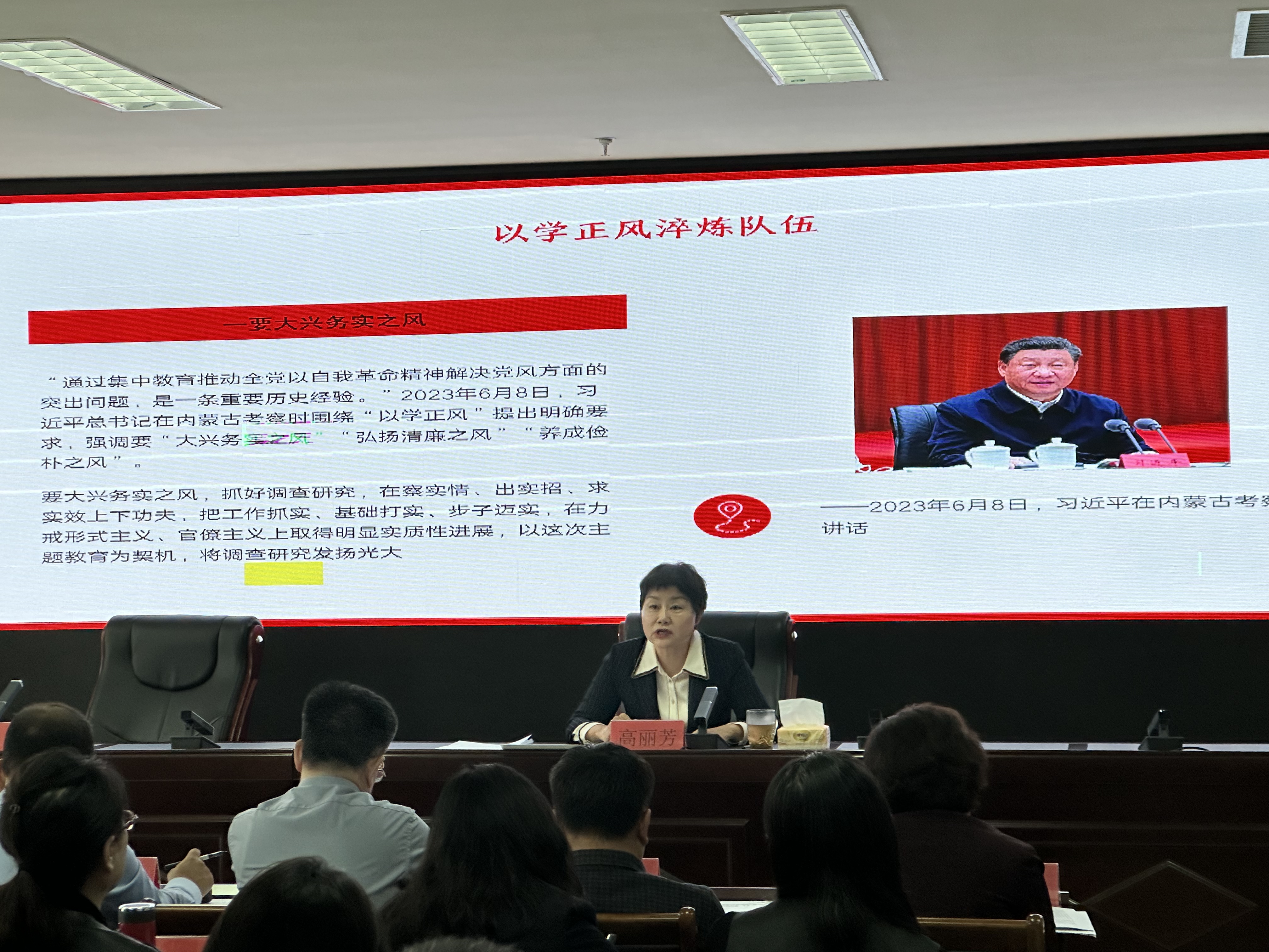 ? ? 主題教育第二期讀書班為期4天,采取個人自學(xué)、專題輔導(dǎo)、專題黨課、學(xué)習(xí)研討相結(jié)合的方式開展。此次讀書班,集團(tuán)黨委班子成員重點(diǎn)研讀了《習(xí)近平著作選讀》《習(xí)近平新時代中國特色社會主義思想專題摘編》《習(xí)近平關(guān)于調(diào)查研究論述摘編》等學(xué)習(xí)書籍。10月26日上午,邀請市委黨校管理教研室娜穆罕老師進(jìn)行了《中國共產(chǎn)黨人的文化觀和文化使命》的專題輔導(dǎo),10月28日上午,集團(tuán)黨委書記、董事長高麗芳同志為全體黨員干部講授了《扎實(shí)開展主題教育,推動企業(yè)發(fā)展邁上新臺階》專題黨課。集團(tuán)黨委班子成員結(jié)合工作實(shí)際,圍繞“習(xí)近平新時代中國特色社會主義思想”進(jìn)行了研討交流。