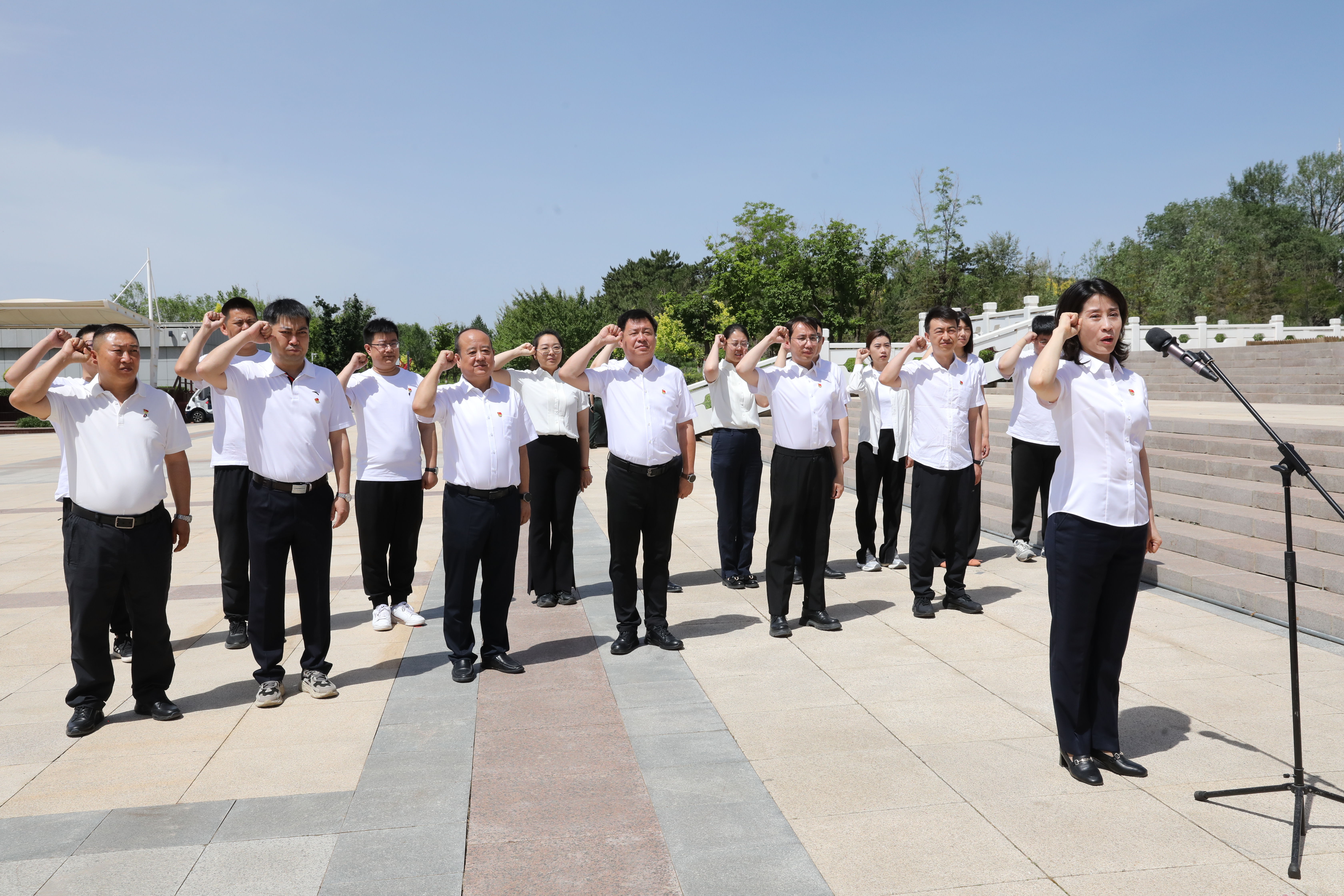 在烈士紀念碑下,華泰證券北京分公司第九黨支部書記祁虹同志帶領全體黨員重溫入黨誓詞