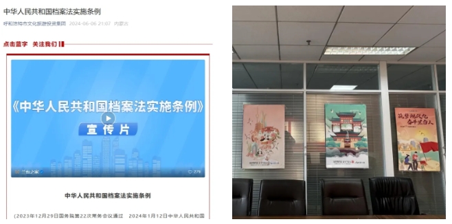 ? ? 市文旅投集團子公司新思路公司利用鴻雁劇場和民族劇場的LED顯示屏對檔案宣傳標語和海報進行滾動循環(huán),擴大宣傳效果;會展公司在2024年第十六屆呼和浩特國際車展暨新能源產(chǎn)業(yè)博覽會期間,利用展廳電子屏幕滾動播放國際檔案日宣傳標語,提升了檔案工作的社會知曉度和影響力;二人臺藝術研究劇院播放了劇院成立70周年的視頻回顧,通過珍貴的歷史照片和影像資料,展示劇院在現(xiàn)代化進程中的奮斗與貢獻,更是對新時代二人臺人的鞭策和鼓舞;首府文旅公司充分發(fā)揮景區(qū)資源優(yōu)勢,利用大青山紅色文化公園、大黑河軍事文化樂園大屏播放《檔案法》《中華人民共和國檔案法實施條例》動漫宣傳片等相關資料,引導大家樹立法治思維,增強檔案意識。其他子公司也通過發(fā)布微信公眾號、播放宣傳片、組織員工參加網(wǎng)絡競答、會議傳達等形式普及檔案知識,宣傳檔案文化;同時集團統(tǒng)籌自媒體及各子公司自媒體平臺發(fā)布微信公眾號等各類檔案日宣傳信息,充分發(fā)揮新媒體平臺作用,拓展宣傳渠道,號召廣大員工積極參與到檔案管理工作中去,營造出“人人都是檔案員”的濃厚氛圍。