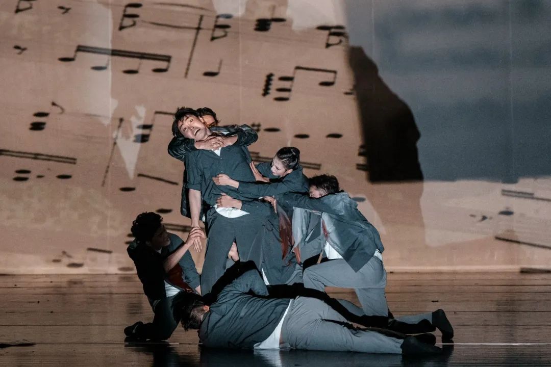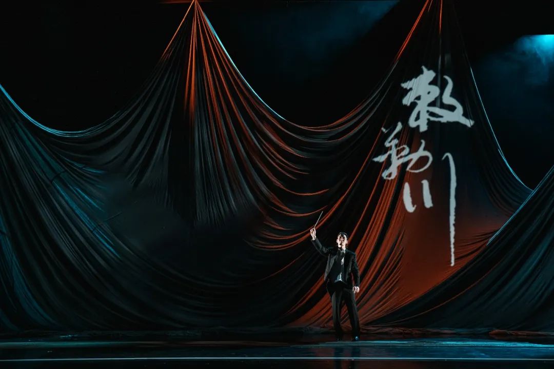 ? ? “敕勒川,陰山下,天似穹廬籠蓋四野……”,《敕勒川》以渾渾浩浩的曲調(diào)勾勒出天空蒼闊,碧綠遼遠(yuǎn)的意境,將詩歌的古韻與舞蹈藝術(shù)相結(jié)合,表現(xiàn)出東方古典美學(xué)的寫意和留白,讓作品在詩意的表達(dá)過程中具有強烈的抒情性,并在此基礎(chǔ)上進(jìn)行大膽創(chuàng)新,通過“千古尋緣”“史中大愛”“力蘊北疆”“川歸黃河”四幕的巧妙構(gòu)思,將一位青年作曲家譜寫交響樂《敕勒歌》的心路歷程與敕勒川這片土地的過往和當(dāng)下巧妙地串聯(lián)起來,從陰山巖畫到史書記載,從無垠草原到黃河滔滔,“作曲家”一次次經(jīng)歷創(chuàng)作的至暗時刻后又一次次在雄渾壯美的自然與歷史中得到療愈,最終在歷史與現(xiàn)實的交響中實現(xiàn)人生追求與信仰的涅槃,生動展現(xiàn)了中華民族在漫長的歷史長河中關(guān)于生命這一永恒主題的思考。劇中除了融入蒙古族、漢族等傳統(tǒng)服飾和音樂等元素,還嘗試結(jié)合現(xiàn)代舞的表現(xiàn)方式,利用光影效果增強舞臺視覺沖擊力。在整個劇情發(fā)展中設(shè)置了幾個關(guān)鍵的情感轉(zhuǎn)折點,如摯愛之人的分別、對家園深深的眷戀之情等,從而引發(fā)觀眾的情感共鳴。