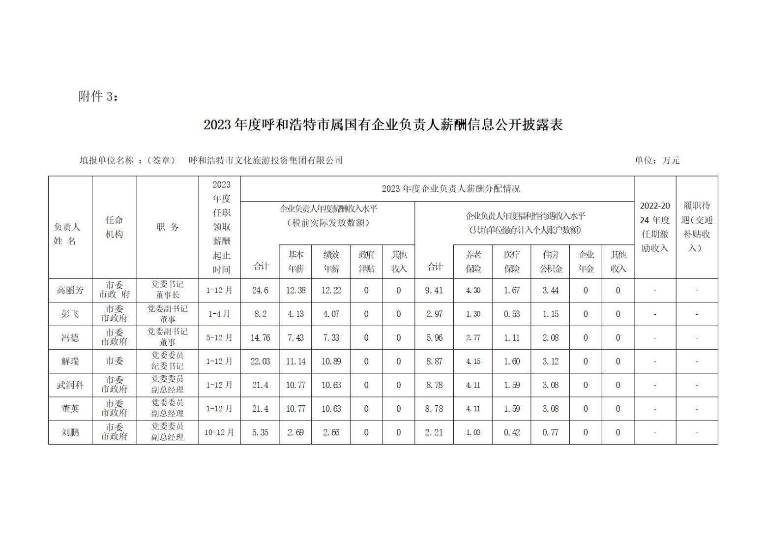 ? ??現(xiàn)將2023年度呼和浩特市直屬國(guó)有企業(yè)負(fù)責(zé)人薪酬信息公開(kāi)披露。