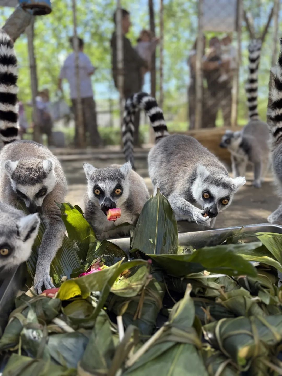 ? ? 值得一提的是,此次活動特別設(shè)置“給動物包粽子”互動環(huán)節(jié),園區(qū)飼養(yǎng)員依據(jù)不同動物的食性特點(diǎn),精選新鮮營養(yǎng)食材,在黑熊池區(qū)域搭建專屬體驗(yàn)區(qū)。游客不僅能親手為小動物們包專屬粽子,還能通過食材搭配探秘動物食性偏好。在投喂小動物們的同時也能觀察到小動物覓食的行為特點(diǎn)。