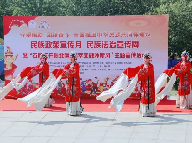 ? ? 5月27日上午,晉劇院黨支部聯(lián)合內(nèi)蒙古自治區(qū)高級人民法院、賽罕區(qū)委統(tǒng)戰(zhàn)部、賽罕區(qū)民委等多家單位在賽罕區(qū)秋嶺公園共同開展了以“石榴花開映北疆 集萃交融沐春風”為主題的民族政策宣傳月、民族法治宣傳周主題宣傳活動。活動以專題文藝表演為主要內(nèi)容,設(shè)置民族政策宣傳單元、助農(nóng)惠民單元、愛心義診單元等多項專題,讓廣大群眾在觀看精彩文藝演出的同時,深入了解民族、法治政策,充分體會鑄牢中華民族共同體意識的重要性。