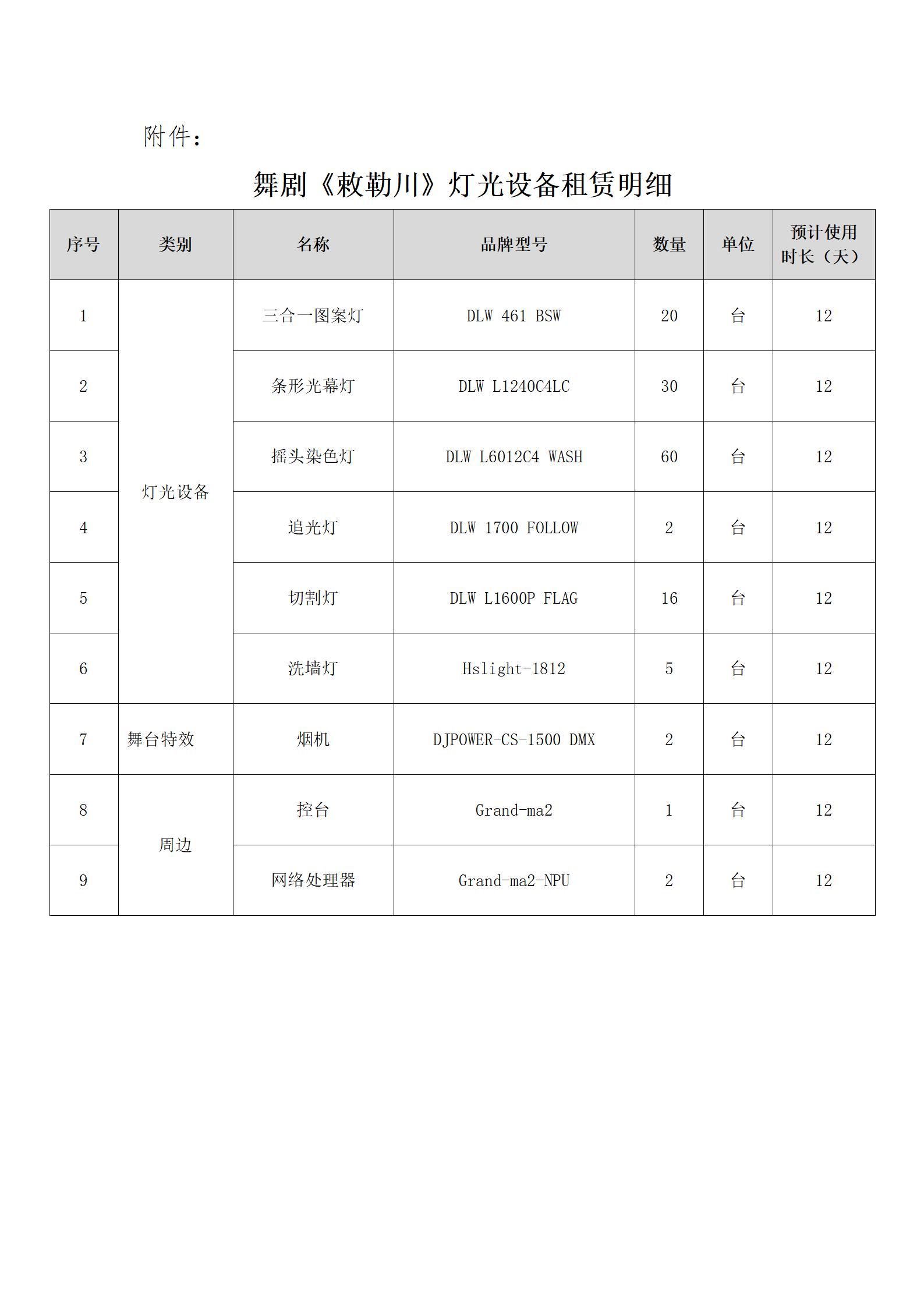 ? ? 附件:舞劇《敕勒川》燈光設(shè)備租賃明細(xì)
